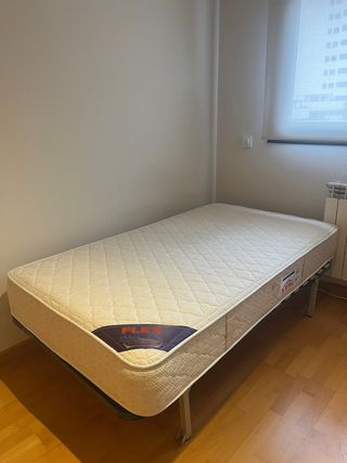 Cama Individual de 80x190 cm. compuesta por colchon FLEX TULIPAN VISCO (que esta como nuevo) y base tapizada PIKOLIN. Están limpios, sin manchas y desinfectados. Puede venir a verlo y probarlo sin compromiso. Para cualquier consulta 675396204