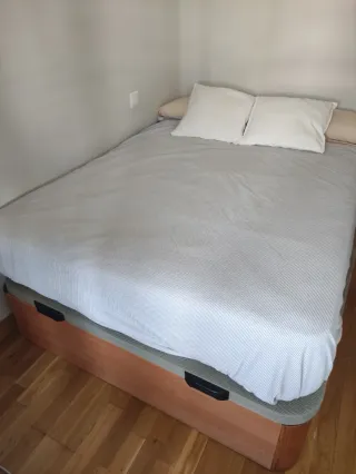 Se vende Cama de 150x190 cm formada por: - Colchón Flex Nube Visco de muelles ensacados de alta firmeza, confort y transpirabilidad y con sistema antibacteriano. Altura 30cm. - Base tapizada de la marca Poligón en tejido 3D transpirable Thermofress beige con 7 patas desmontables de madera natural. Altura 32cm con patas de 26cm. Comprados conjuntamente en diciembre de 2023 y estan muy buen conservados, como nuevos. Lo vendo porque me mudo con mi novio.