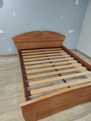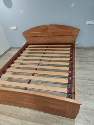 Se vende cama completa con somier de láminas y colchón de viscoelástico de regalo. - Estructura de cama de madera. - Somier de láminas de madera con soportes de plástico.