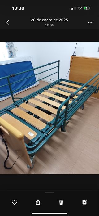 Características: ✔️ Motor eléctrico para elevar respaldo y piernas ✔️ Barandillas laterales abatibles de seguridad ✔️ Cabecero y piecero en madera ✔️ Estructura metálica resistente ✔️ Incluye colchón sanitario impermeable y transpirable ✔️ Mando con cable para ajuste de posiciones ✔️ Muy cómoda, estable y fácil de usar Siempre usada en domicilio particular, muy bien cuidada y funcionando perfectamente. 📏 Medida aproximada: cama individual (90x190/200 cm) 📦 Recogida en mano Ideal para uso doméstico o profesional (cuidadores, residencias, rehabilitación).