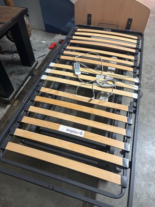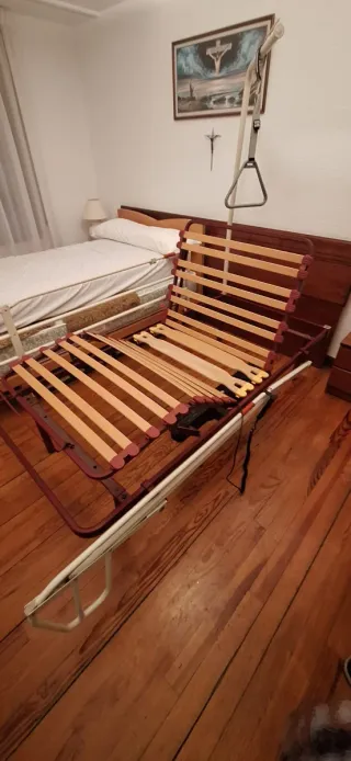 Somier y cama articulada, abatible ideal para uso geriátrico. Como nueva. - Estructura metálica robusta. - Láminas de madera para un soporte confortable. - Dispone de barreras. Entrega en mano