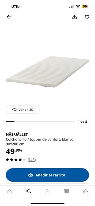 2 Colchoncillos o topper de confort NÄSFJÄLLET de IKEA. 28,50 cada uno Están nuevos. Comprados hace un año y con funda de colchón desde el primer día. Solo han sido usados cuando me ha visitado alguna amiga o mis padres. Los vendo porque he cambiado las dos camas de 90 por una de matrimonio. - Medidas: 90x200 cm.