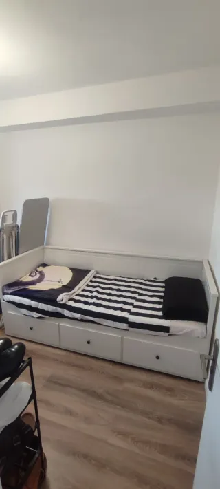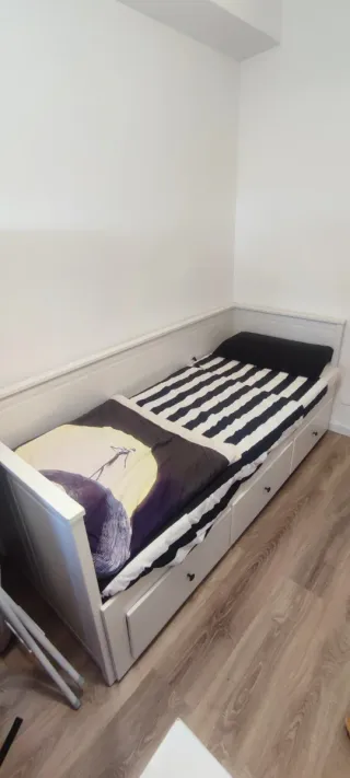 Diván modelo Hemnes de Ikea. La estructura es extraible para convertir una cama individual en cama de matrimonio. Tiene algun pequeño desperfecto por el uso, pero es totalmente funcional. Se vende junto con los 2 colchones incluidos.