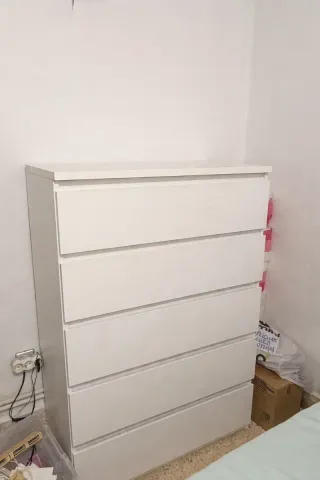 Se vende conjunto de habitación cama de unos 150 x200 con armario y cómoda. Se recoge en Azuqueca de Henares y el desmontaje corre a cargo del comprador. La cama tiene un pequeño desperfecto en el cabecero y en una pata. Se puede ver en las fotos. Es todo de IKEA