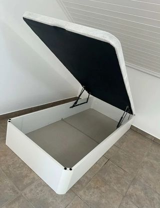 Estructura de cama con somier de láminas. - Marco de cama tapizado en tela. - Base de listones de madera para el colchón. 160x200 Medidas exactas en la última foto
