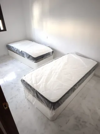Se venden dos colchones de 90 cm con sus somieres, listos para usar. Se pueden colocar juntos como cama grande o separados como camas individuales. Buen estado. Ideales para habitación de invitados, piso de alquiler o segunda residencia. Se venden juntos o por separado. La persona que lo compre debe bajarlo y transportarlo. Precio: • Lote completo (2 somieres + 2 colchones): 120 € • Somier: 40 € • Colchón: 30 € Si interesan las mesillas, están disponibles en otro anuncio.
