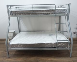 680*558*196 ☎️ 🛏️ Litera metálica NUEVA – Matrimonial o Individual Literas nuevas, resistentes y prácticas, con estructura de acero, escalera integrada y barandilla de seguridad. Ideales para ahorrar espacio en cualquier habitación. 💰 Precios: Litera matrimonial: 130 € 👉 Con colchones: 360 € Litera individual: 120 € 👉 Con colchones: 285 €