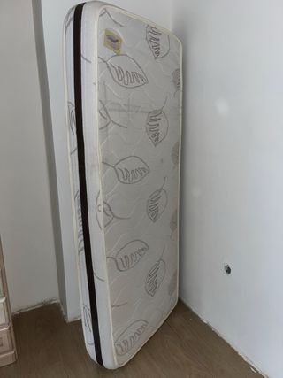 Se vende colchón individual y somier, comprados hace seis meses. - Colchón con tejido acolchado. - Diseño moderno con ribete oscuro.