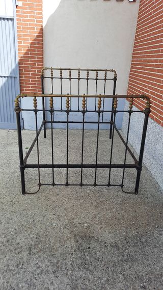Cama antigua de hierro y metal, en perfecto estado, 135x185. Cabecero y trasero, que se pueden usar individualmente tanto uno como otro de cabecero.