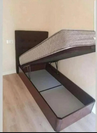 Base de cama individual en buen estado. - Tapizado en tela. - Estructura de madera.