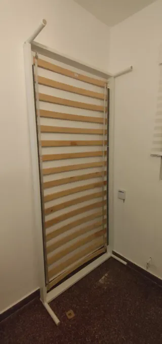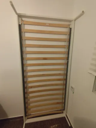 Estructura de cama individual de Ikea, con somier de láminas. - Medidas: 90 x 200 cm. - Materiales: Metal y madera.