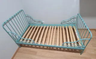 Estructura de cama metalica y extensible y somier de laminas de madera. No se ha usado nada. Esta a estrenar, interesados pueden venir a verla y comprobarlo.
