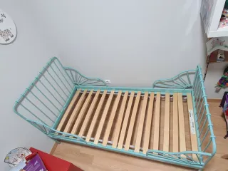 Cama infantil de madera de Ikea. Un mueble práctico y resistente para los más pequeños. - Diseño de líneas suaves. - Estructura robusta. También tengo el colchón k está nuevo.precio del colchón 50€ Tiene falta d pintarla y queda como nueva era rosado y se pintó en verde turquesa.