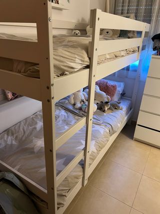 Litera modelo Mydal de IKEA en color blanco. Ideal para habitaciones infantiles o juveniles. Muy buen estado. Se vende sin colchones.