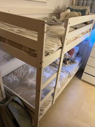 Litera modelo Mydal de Ikea. Estructura de madera en color blanco. Incluye un colchón. Se compro hace un año y poco, tiene poco uso. - Diseño robusto y funcional. - Ideal para habitaciones infantiles o juveniles.