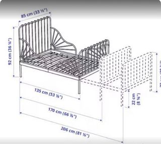 Cama de hierro de Ikea, en color blanco. Está en buen estado y es perfecta para una habitación infantil. Se entrega con su somier pero sin colchon - Medidas: ancho 80cm, largo maximo 2m - Por volumen, se entrega en mano y semidesmontada ( ver fotos ) para mejor transporte La estructura de la cama se puede regular y acortar para hacerla mas pequeña de larga. Se recoge en Barcelona Zona Estacion de Sants