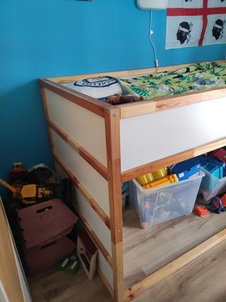 cama infantil Ikea 99 cm ancho 1,15m de alto y 2,08 m de largo posibilidad de cambiar la posición con colchón abajo colchón de Ikea incluido Regalo funda nórdica