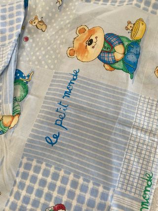 Funda nórdica para dormitorio infantil azul con dibujo ositos. Funda, almohada y bajera a juego. 50% algodón 50% poliester