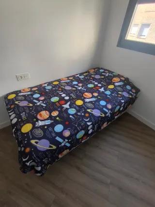 Se vende cama juvenil completa de 105 x 190 cm, lista para usar. Incluye somier y colchón, ambos en muy buen estado. - Ideal para habitaciones infantiles o juveniles. - Incluye somier y colchón.