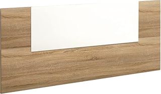 Cabezal de cama juvenil con un diseño moderno y bicolor. - Combinación de colores beige y marrón. - Fabricado con materiales de madera.