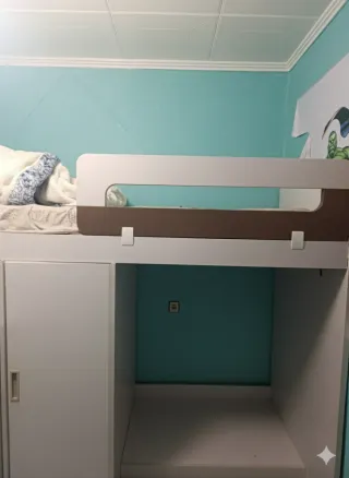Vendo cama doble juvenil en excelente estado, muy cuidada y funcional. Incluye 4 cajones grandes de almacenaje, ideales para guardar ropa, ropa de cama o juguetes, lo que la hace perfecta para habitaciones con poco espacio. ✨ Diseño moderno en tonos claros con frentes en color berenjena ✨ Cajones amplios y resistentes ✨ Estructura sólida y estable ✨ Muy cómoda y práctica ✨ Siempre bien cuidada 📏 Medida del colchón arriba: 1,05m 📏 Medida del colchón abajo: 90cm x 180cm 🛏️ Incluye colchón de la parte baja de la cama NUEVO +50€