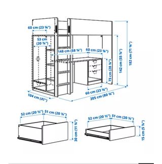 Se vende cama nido con arcón cabecero, 2 colchones, 2 somieres, escritorio de 2,70 m, panel lateral de 2 m, mueble con estante y 2 cajones, madera de haya. Está desmontado y embalado.