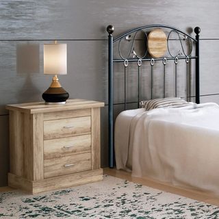 Dormitorio compuesto por mesita de noche de tres cajones, y un cabecero de forja negro con una galleta decorativa a juego con la mesita. Se sirve en KIT. Tablero de aglomerado con chapa sintetica y melaminizada (16 y 32mm.). Cabecero de forja con pintura electrostática. ENVIO:Se entrega en puerta de casa gratis en gijon sin montaje,con montaje tiene un costo adicional.Aviso importante: Las descripciones, imágenes, medidas y precios de los productos pueden contener errores tipográficos o variaciones. Antes de realizar tu compra, te recomendamos confirmar toda la información.