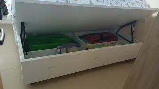 Cama juvenil compacta de color blanco, mide 1'90 X 0'80 cm. Incluye dos colchones y tiene cajón inferior La persona que la compre tiene que desmontarlo y llevárselo todo. No se hace envío