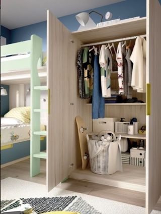 Dormitorio juvenil con un amplio espacio de almacenamiento. Podrás mantener el orden todo el tiempo que quieras. La cama compacta de 90×190 cm cuenta con dos cajones inferiores ideales para guardar las mantas en invierno.Somieres (2) necesarios en la cama,50€ unidad Acompañada de un armario de dos puertas con una cajonera interior, toda la ropa tendrá su propio sitio. Guarda todo el calzado en el zapatero extraíble , y disfruta de tus hobbies en el escritorio que completa esta composición de dormitorio. Añade un toque de personalidad añadiendo tu decoración favorita en la estantería. Envío y montaje opcional 155€(hasta 15 km).