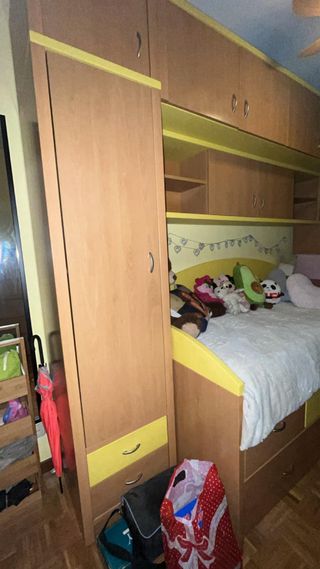 Conjunto de muebles para habitación infantil o juvenil. - Cama nido con múltiples cajones. - Incluye solo somier de la cama principal ya que la de abajo no necesita - Gratis los dos colchones si se quieren (tienen uso) - Armario a juego.( si se quiere) +40€