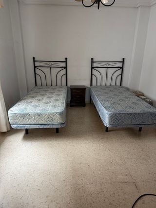 Se vende conjunto de dormitorio juvenil. - Dos camas individuales con somier y colchón. 1,90x90 - Mesita de noche de madera. - Dos cabeceros