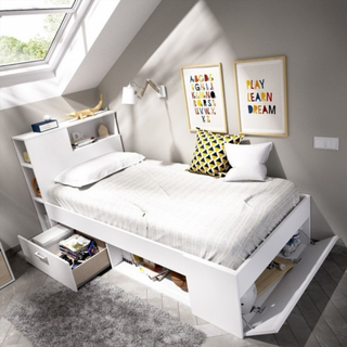 Cama Juvenil Compacta Lanka con Cabezal. Blanco
