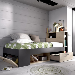 Cama Juvenil Compacta Lanka con Cabezal. Natural/