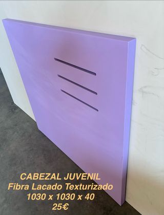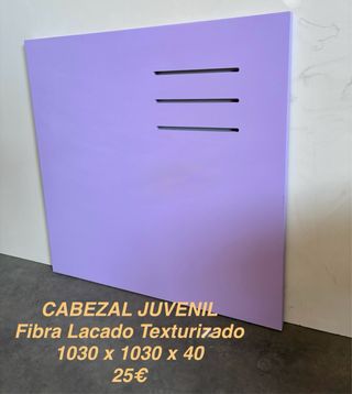 Cabezal juvenil con un acabado lacado texturizado. - Medidas: 1030 x 1030 x 40. - Diseño moderno con tres ranuras horizontales.