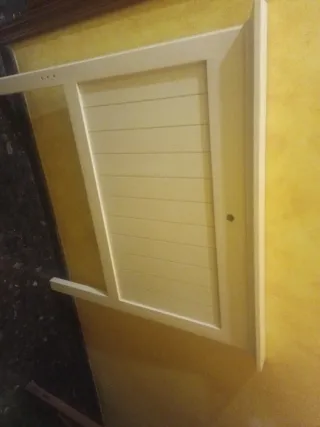 Cabecero de madera en color blanco roto. Se encuentra en buen estado..para cama de 90 juvenil. - Diseño con lamas verticales. - Orificio central superior.