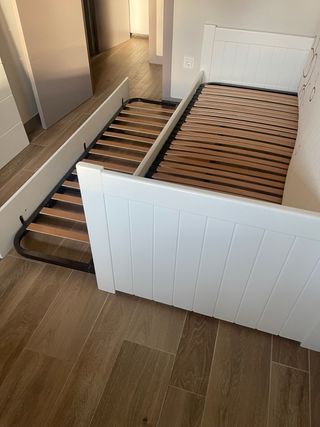 Vendo cama nido individual con cama inferior extraíble, incluye dos colchones. Ideal para habitación juvenil o de invitados. La estructura y los colchones están en muy buen estado, se ha usado poco y siempre con protector. Medidas aproximadas: 90x190 cm (cada cama). Fácil de mover y práctica para ahorrar espacio. 💸 Precio: 200 € (negociable)
