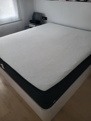 Estructura de cama: • Madera. • 4 cajones grandes. • Se entrega montada, pero se puede desmontar antes de que se la lleven. En muy buen estado. Incluye colchón viscoelástico de alta calidad, en muy buenas condiciones. Es un Imperial Confort Oslo New, viscoelástico, firmeza media-alta Nos encanta la cama pero queremos cambiarla por una king-size de 2 x 2 m. Medidas estructura de cama: Ancho: 205 cm Fondo: 165 cm Alto: 47 cm Medidas colchón: Ancho: 205 cm Fondo: 165 cm Alto: 22 cm (sobresale sólo 15cm cuando encajado en el sommier) Si estás interesado sólo en una de las dos partes, escucho ofertas ❣️