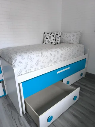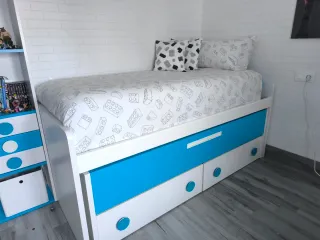 Se vende cama nido con cajones y colchones incluidos. - Medidas de los colchones: 90x190 cm. - Incluye edredones.