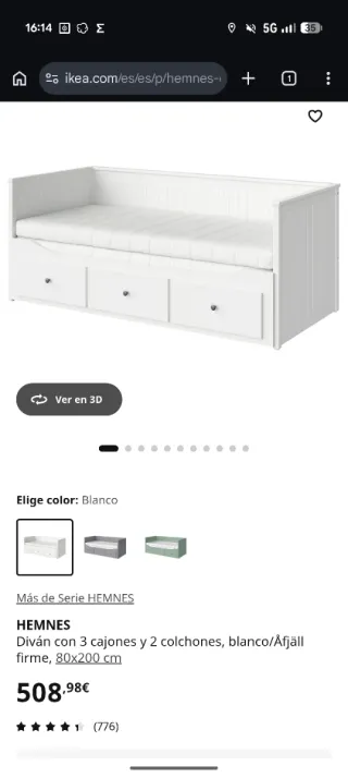 Vendo estructura de diván HEMNES de IKEA en color blanco, incluye los 2 colchones. Está en estado impecable. Es un mueble 4 en 1 muy versátil: -Sofá para el día a día. -Cama individual (80x200 cm). -Cama doble (160x200 cm) al extraer la base. -Almacenaje: 3 cajones grandes con mucha capacidad para ropa de cama o juguetes. -Incluye: union entre colchones, 2 colchones, 2 bajeras y funda nordica cama doble.
