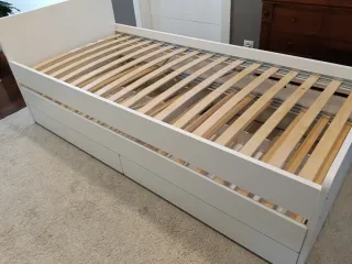 Cama nido IKEA BRIMNES diván con 2 cajones 80x200 + 2 colchones Se vende cama diván de IKEA modelo BRIMNES en color blanco, en muy buen estado. ✔️ Incluye 2 colchones (también en excelente estado, poco uso) ✔️ Sin manchas ni deformaciones ✔️ Cajones amplios para almacenamiento ✔️ Se convierte fácilmente en cama doble Medidas: 80x200 cm (individual) → 160x200 cm (doble)