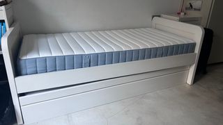 Cama nido de IKEA, incluye colchón y almohada - Estructura de madera. - Color blanco. - Incluye tres cajones de almacenamiento.