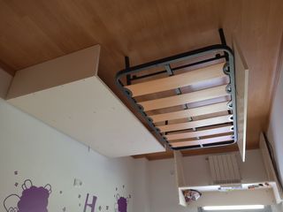 Cama nido en buen estado, con espacio de almacenamiento integrado. Incluye los dos colchones en buen estado. Uno de los cierres está estropeado de fácil arreglo. Amplio espacio de almacenamiento. Se entrega como está. Desmontar y recoger - Estructura de madera.
