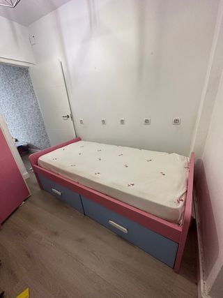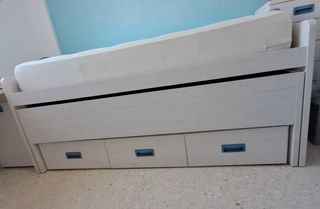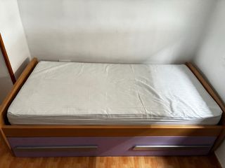 Cama nido con dos cajones muy espaciosos, la vendo por comprarme otra más grande. Ancho 90cm. Madera maciza. Incluye los dos colchones y somier. Preguntar sin problema para más fotos.
