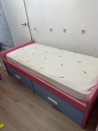 Se vende cama nido infantil en excelente estado, ideal para habitaciones de niños. - Diseño moderno y funcional. - Incluye cajones de almacenamiento. - Color rosa y blanco.