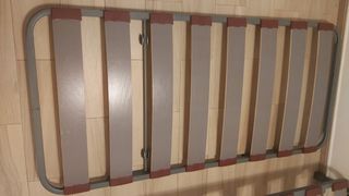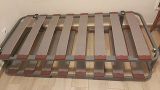 Somier nido de láminas en color gris. Está en buen estado. SE INCLUYEN LOS DOS COLCHONES. 90x190 cm - Dos niveles de láminas. - Estructura metálica resistente.