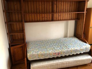 Se vende cama nido de 90cm con una cama adicional debajo, ideal para aprovechar el espacio. Incluye una estantería a juego. - Estructura de madera. - Dos camas de 90cm. - Estantería a juego.