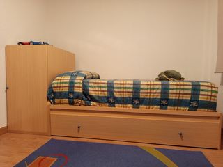 Se vende conjunto de armario y cama. - Armario con baldas y barra para colgar. - Cama nido doble con cajones y armarios se vende separado o junto precio separado 100 euros cada uno precio junto 170 euros