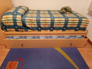 se vende cama nido con somier y posibilidad de colchón. También se podría acompañar de escritorio. cama y somier: 180 euros colchon Visco+hr: 100 euros escritorio: 70