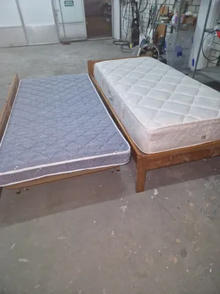 Se venden dos somieres, uno de ellos con estructura metálica y láminas de madera, y el otro completamente de madera. - Medidas aproximadas: 190x90 cm cada uno. - Ideal para colchones individuales. - Perfectos para camas nido o literas.