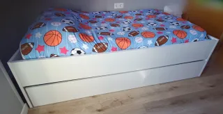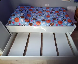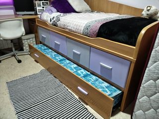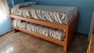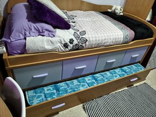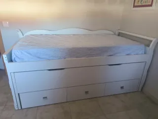 Vendo por cambio de cuarto pero está en perfecto estado. Incluye cama de 90, cama nido de 90, cajones de 90 de fondo. También está incluído en el precio la mesilla de tres cajones y una estantería. No están incluídos los colchones ni la ropa de cama.